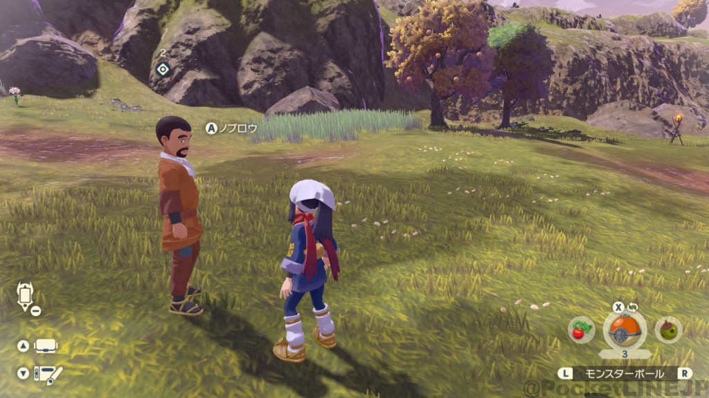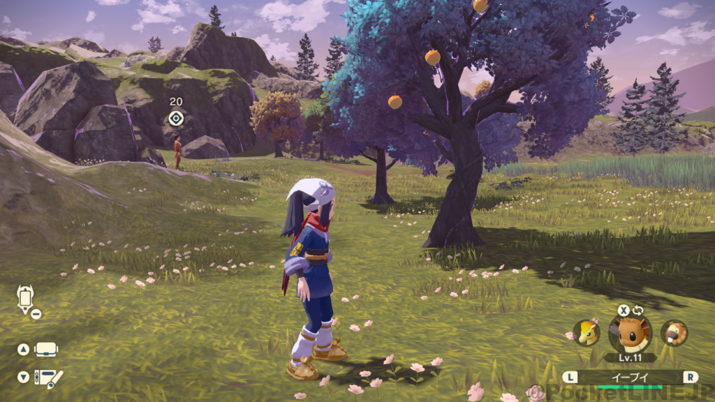 シシの山道 に生えてる木を見つけて、ポケモンに採ってもらう。