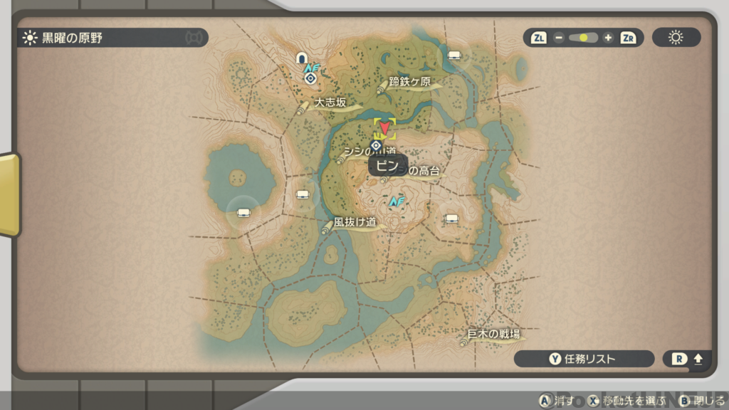 画像のように、ひし形のアイコンを表示されて任務の場所まで案内してくれる機能があります。ただし、サブ任務のガイドアイコンを表示させてしまうとメイン任務のガイドアイコンが非表示になるのでご注意ください。