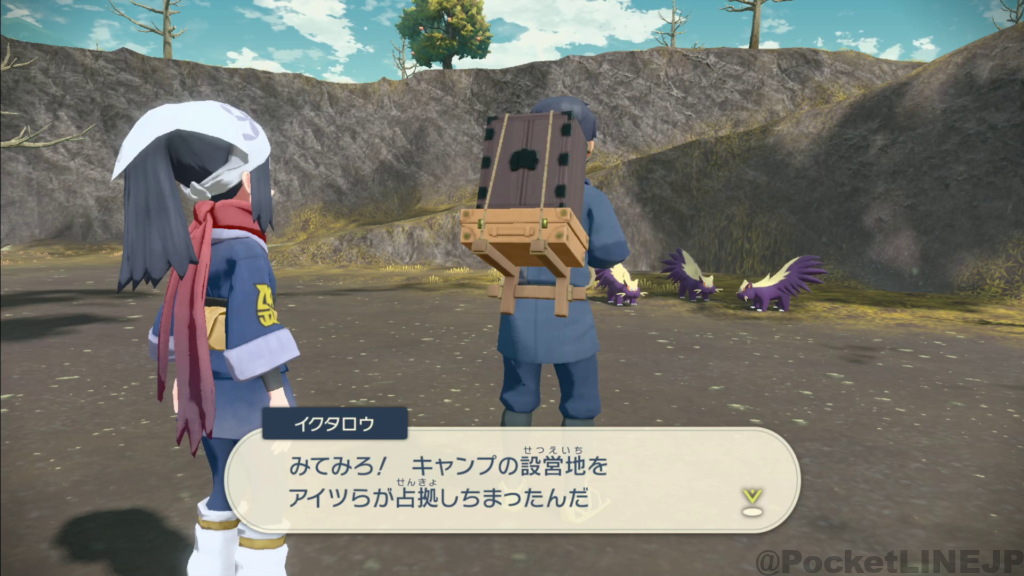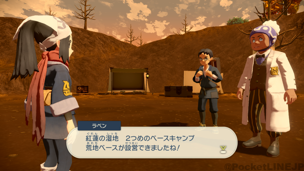 荒地ベースの設営を手助けする。