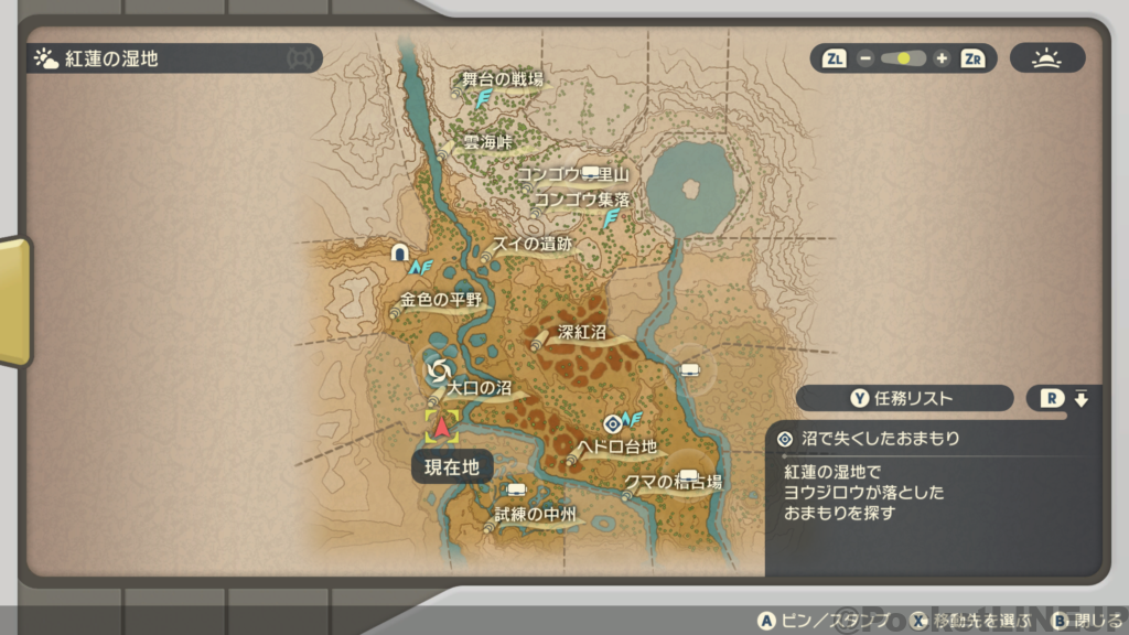 紅蓮の湿地へ向かい、上の地図の場所でミヨに話しかける。