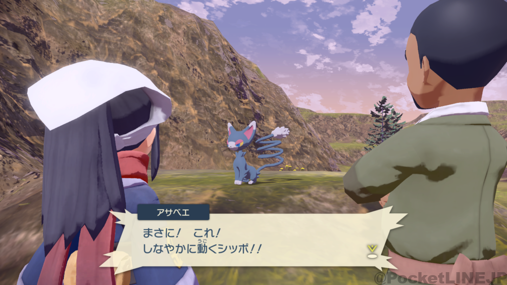 「バネのように うずを巻いた しなやかなシッポのポケモン」を渡す。(ニャルマー)
