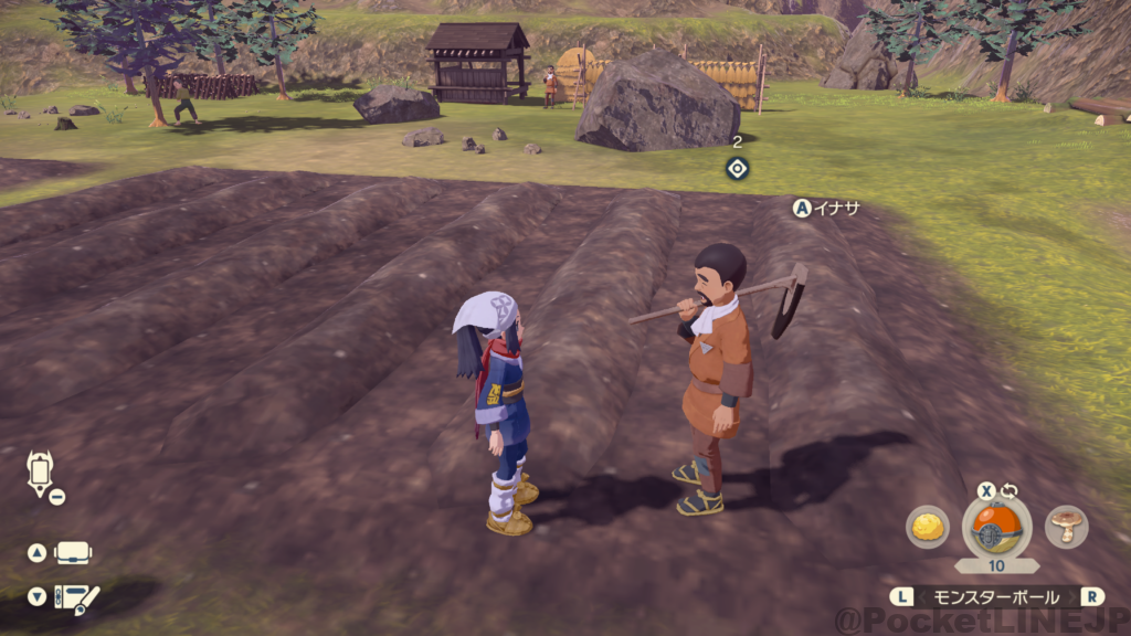 イナサに話しかける。※『メイン任務9 新たな任務へ 』と『サブ任務 27 畑を耕す相棒を』を受けた後