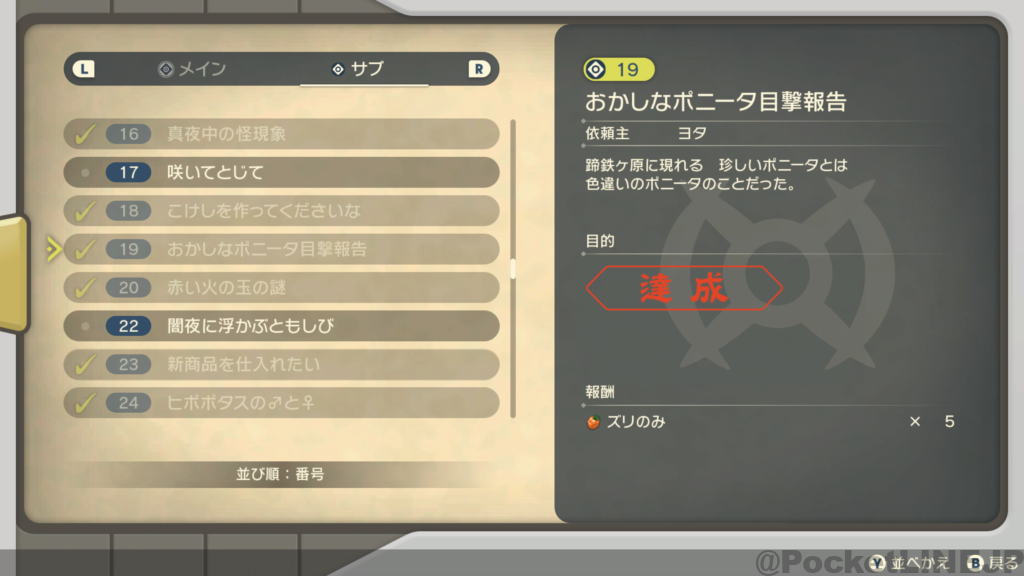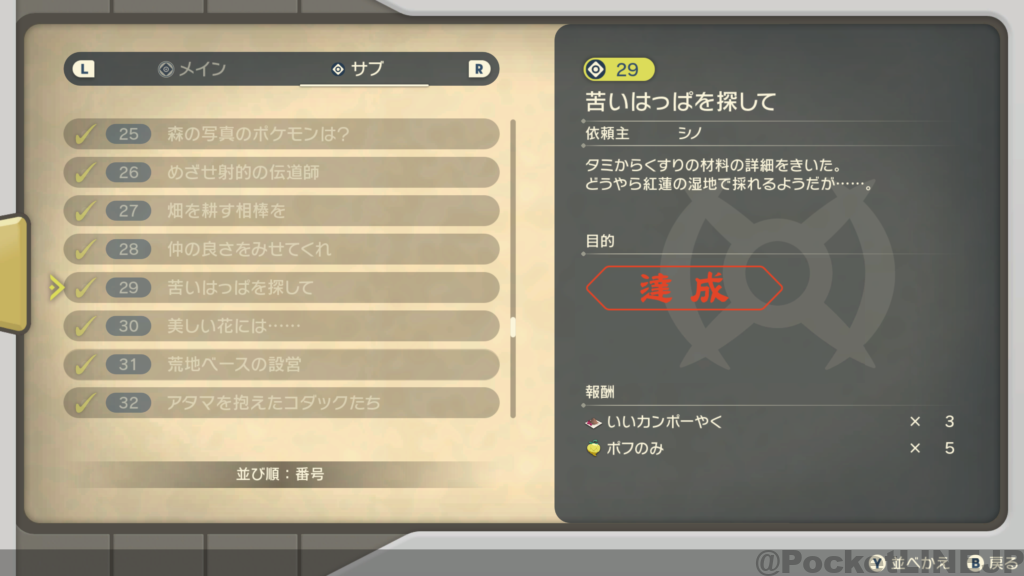 - 「R」ボタンでサブ任務一覧へ