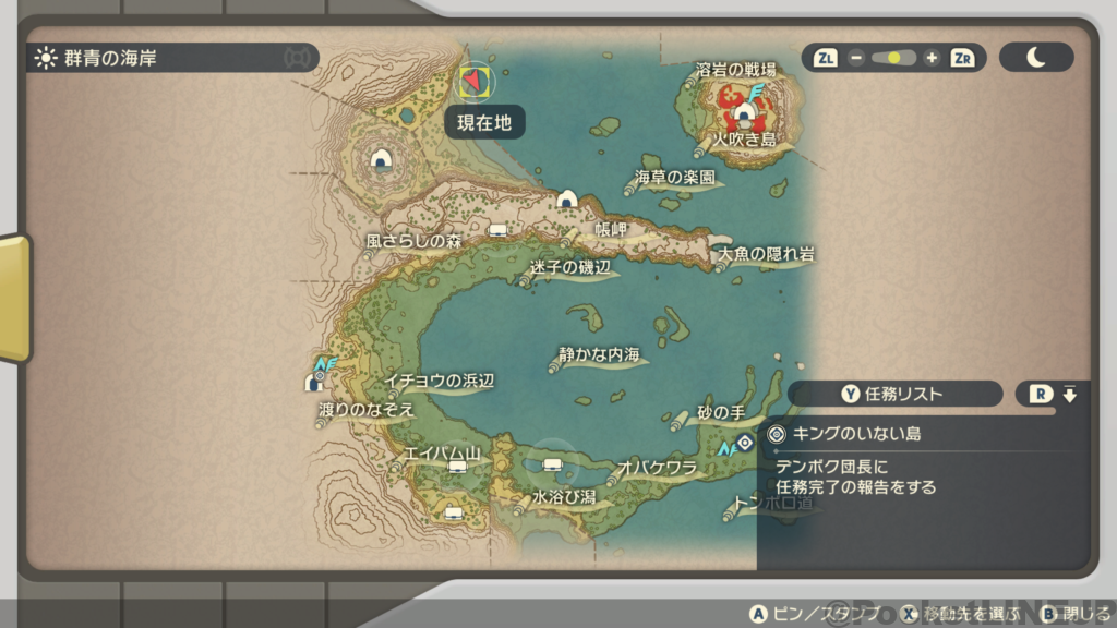 画像のように、ひし形のアイコンを表示されて任務の場所まで案内してくれる機能があります。ただし、サブ任務のガイドアイコンを表示させてしまうとメイン任務のガイドアイコンが非表示になるのでご注意ください。