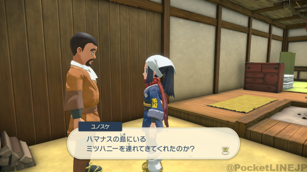 ユノスケに話しかける。※ 『メイン任務9』でイダイトウ入手後