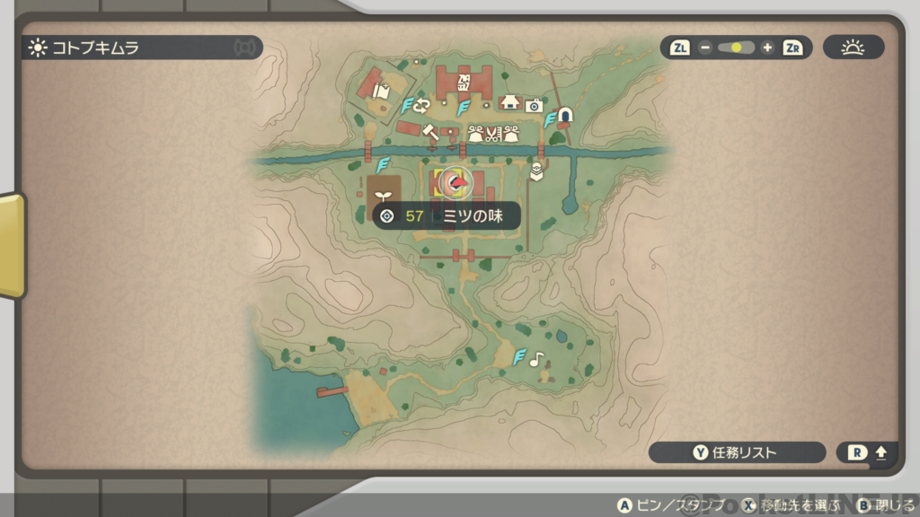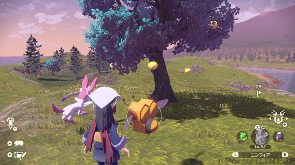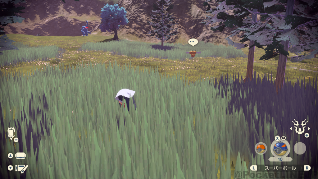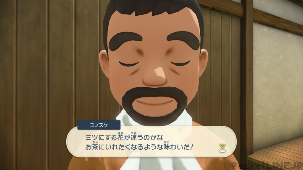 イダイトウでハマナス島へ渡り、揺れている木から出てくるミツハニーを捕まえます。揺れている木がない場合は、宿舎に戻り時間を変更してください。