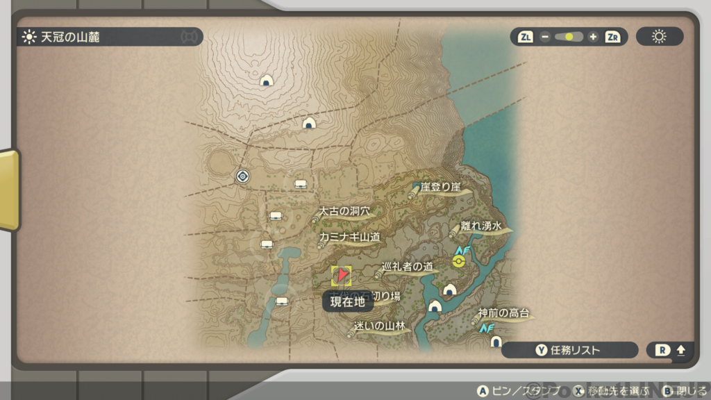 画像のように、ひし形のアイコンを表示されて任務の場所まで案内してくれる機能があります。ただし、サブ任務のガイドアイコンを表示させてしまうとメイン任務のガイドアイコンが非表示になるのでご注意ください。
