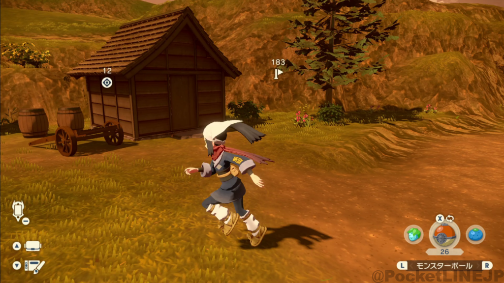 「アルセウスフォン(マイナス[-]ボタン)」から「農場前(Xボタンで移動先を選ぶ)」まで飛ぶと最短で行けます。