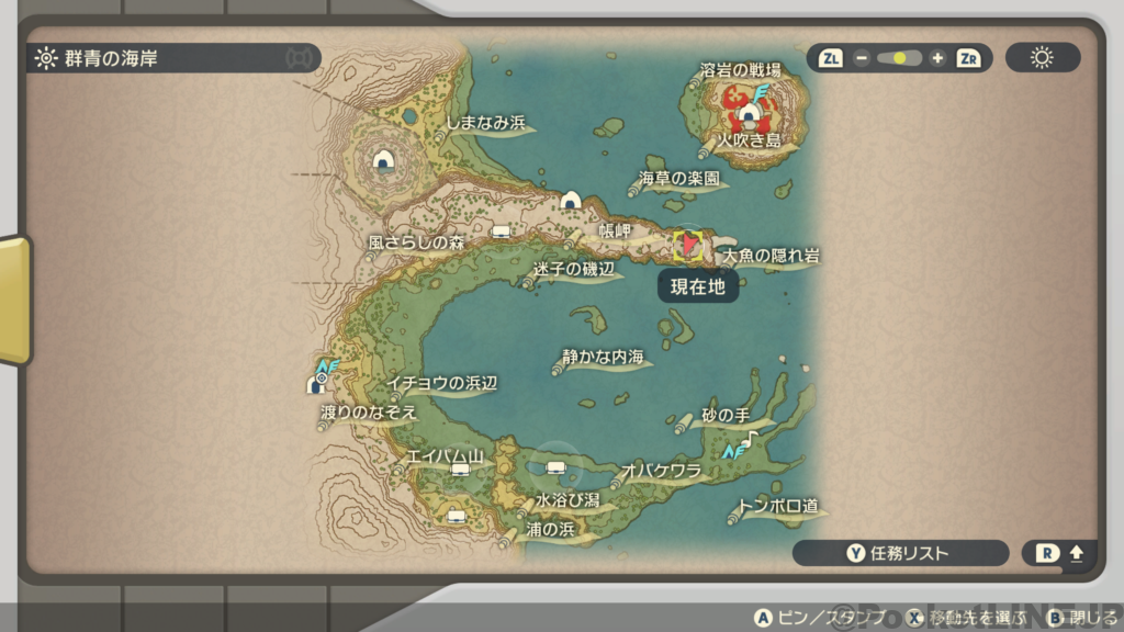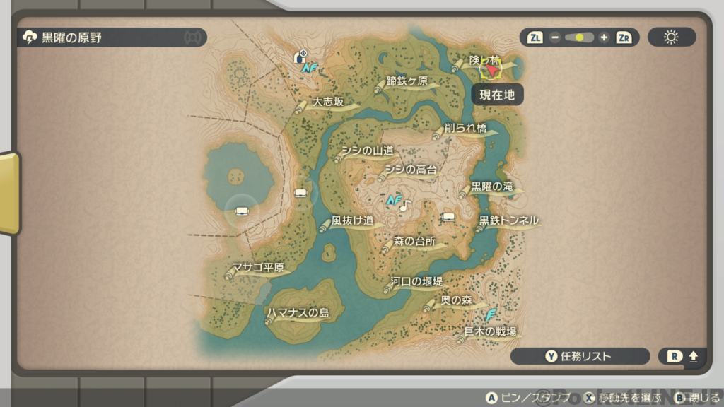 • 「Y」ボタンで任務リストを開く